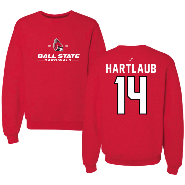 Ball State University Baseball Red General Crewneck - #14 Jacob Hartlaub