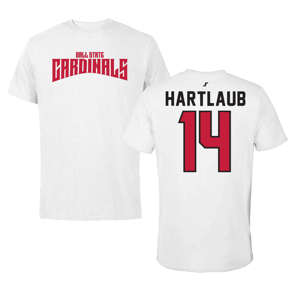 Ball State University Baseball White Tee - #14 Jacob Hartlaub