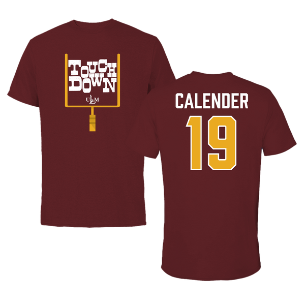 University of Louisiana Monroe Football Maroon Touchdown Tee - #19 Jaeden Calender