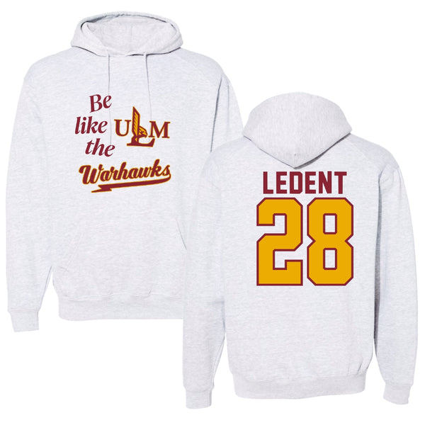 University of Louisiana Monroe Football Light Gray Be Like Us Hoodie - #28 Jaeden LeDent