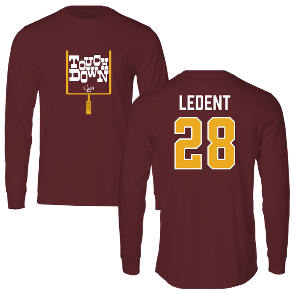 University of Louisiana Monroe Football Maroon Touchdown Long Sleeve - #28 Jaeden LeDent