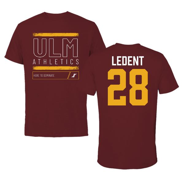 University of Louisiana Monroe Football Maroon Dominate Tee - #28 Jaeden LeDent