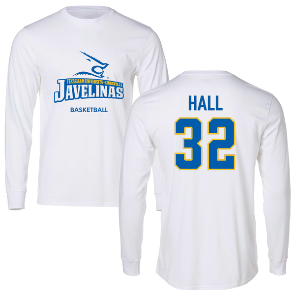 Texas A&M University-Kingsville Basketball (M) White Long Sleeve - #32 Jarin Hall