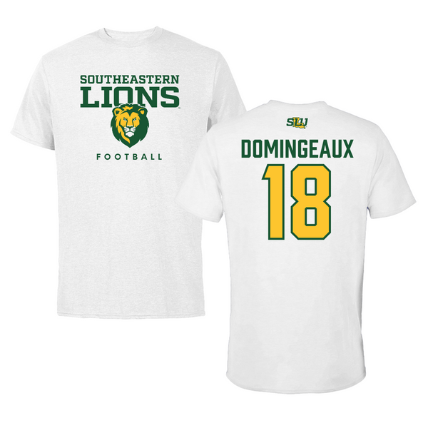 Southeastern Louisiana University Football White Tee - #18 Jaylon Domingeaux