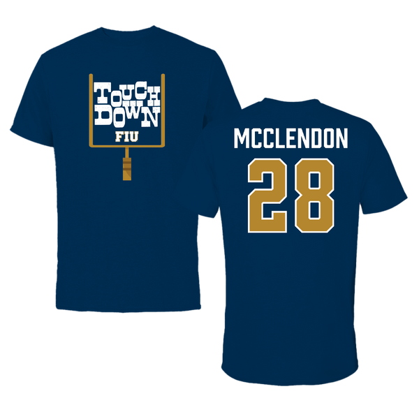 Florida International University Football Navy Touchdown Tee - #28 Jeremiah McClendon
