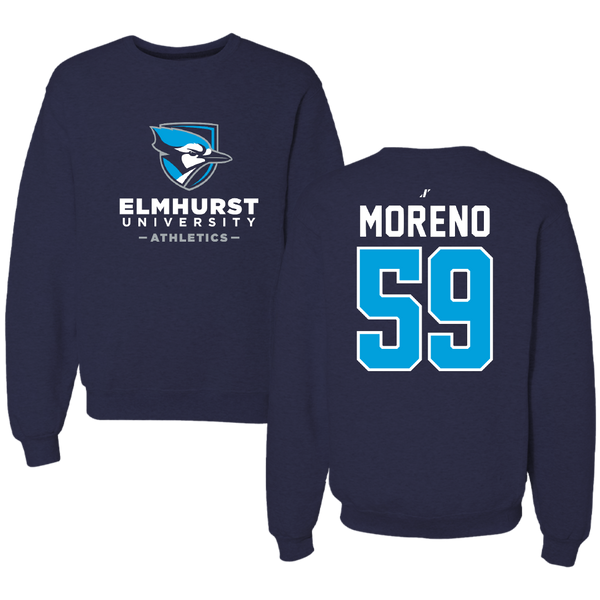 Elmhurst University Football Navy Crewneck - #59 Jesus Moreno
