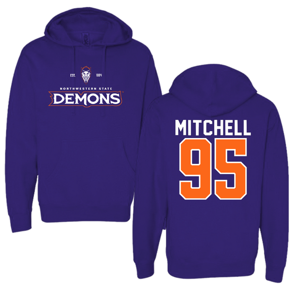 Northwestern State University Football Purple General Hoodie - #95 Johnny Mitchell