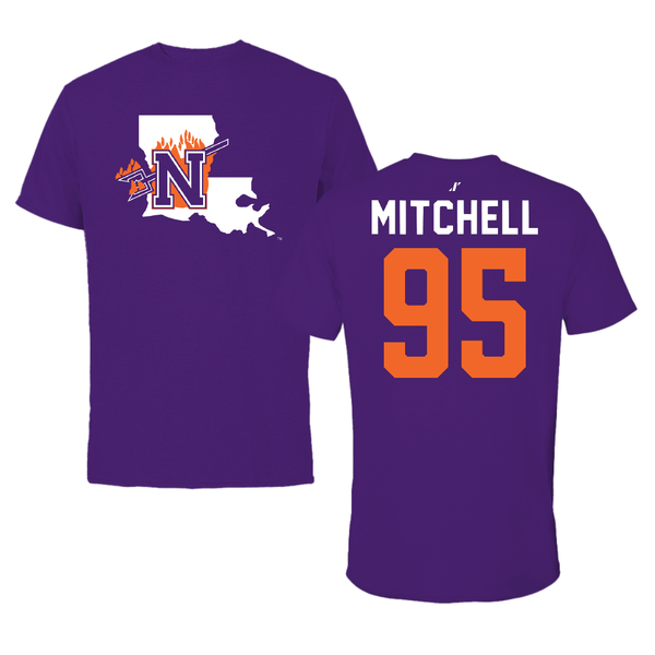 Northwestern State University Football Purple State Tee - #95 Johnny Mitchell