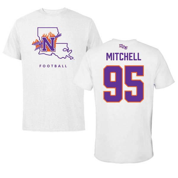 Northwestern State University Football White Tee - #95 Johnny Mitchell
