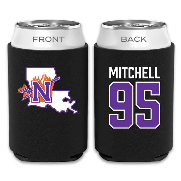Northwestern State University Football Black Can Cooler - #95 Johnny Mitchell