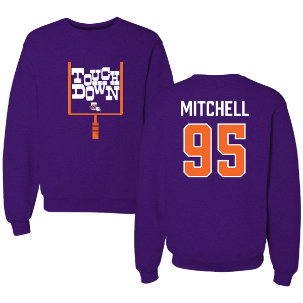 Northwestern State University Football Purple Touchdown Crewneck - #95 Johnny Mitchell
