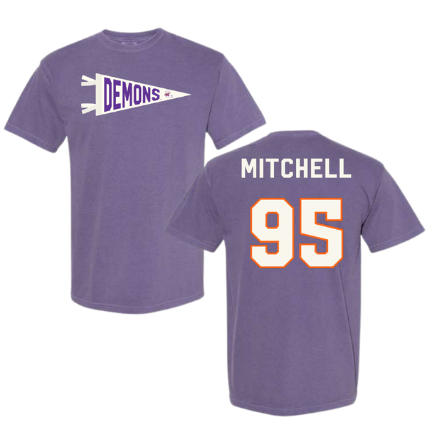 Northwestern State University Football Purple Pennant Comfort Colors Tee - #95 Johnny Mitchell