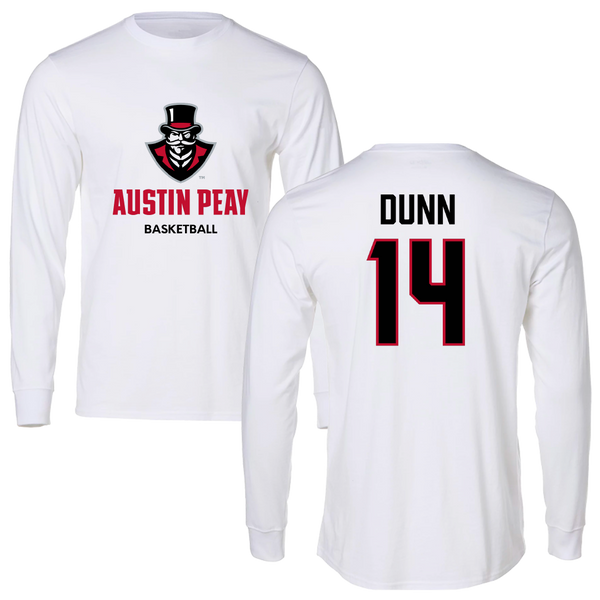 Austin Peay State University Basketball (M) White Long Sleeve - #14 Jonathan Dunn