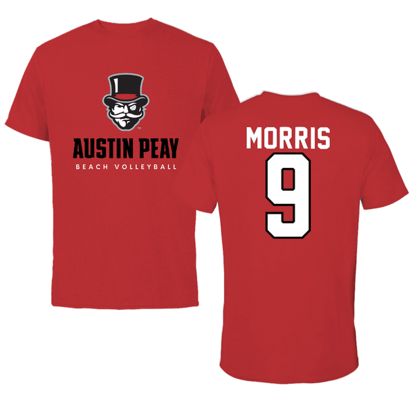 Austin Peay State University Beach Volleyball Red General Tee - #9 Jordan Morris