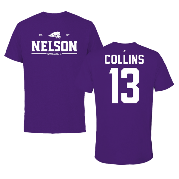 Nelson University Basketball (M) Purple Gameday Tee - #13 Justin Collins