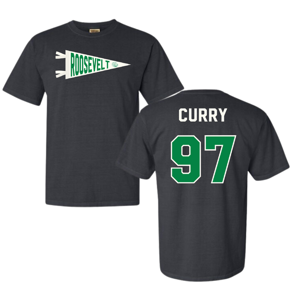 Roosevelt University Football Dark Gray Pennant Comfort Colors Tee - #97 Justin Curry