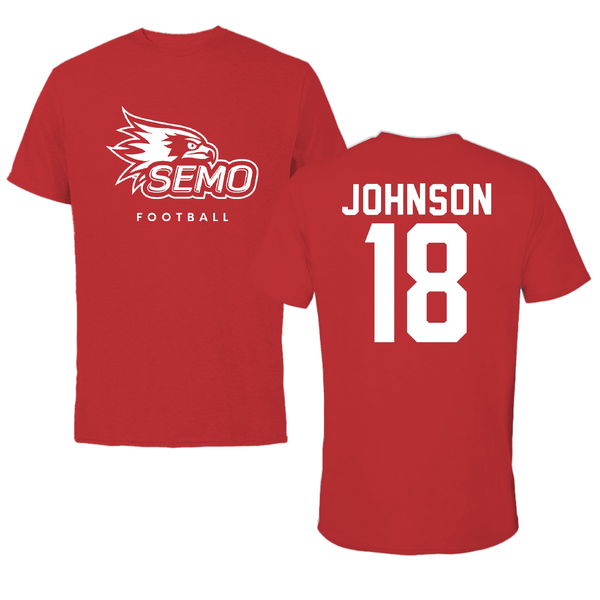 Southeast Missouri State University Football Red Tee - #18 Justus Johnson