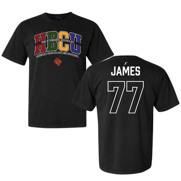 Savannah State University Football Black HBCU Comfort Colors Tee - #77 Justyn James