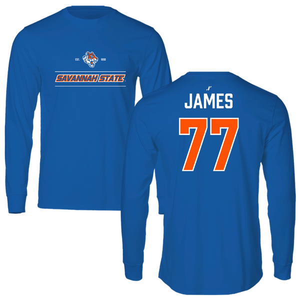Savannah State University Football Blue General Long Sleeve - #77 Justyn James