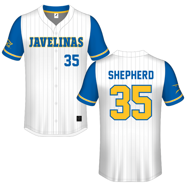 Texas A&M University-Kingsville White Pinstripe Button-Down Jersey - #35 Karson Shepherd
