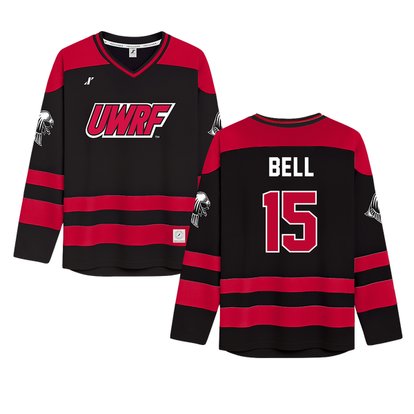 University of Wisconsin-River Falls Black Hockey Jersey - #15 Katherine Bell