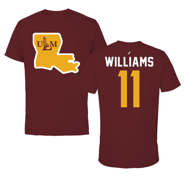 University of Louisiana Monroe Basketball Maroon State Tee - #11 Kelton Williams