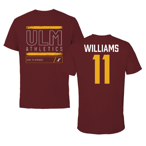 University of Louisiana Monroe Basketball Maroon Dominate Tee - #11 Kelton Williams