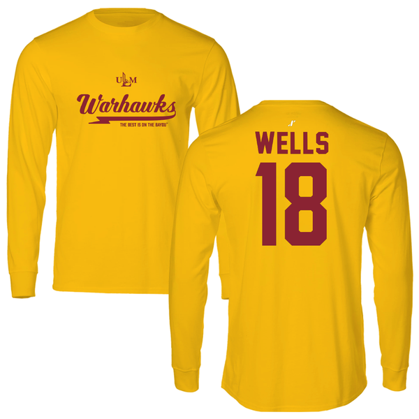 University of Louisiana Monroe Football Gold General Long Sleeve - #18 Kevontay Wells