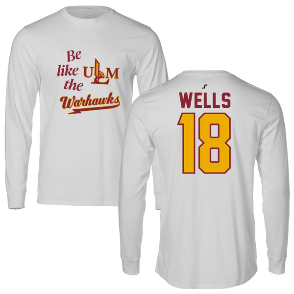 University of Louisiana Monroe Football Light Gray Be Like Us Long Sleeve - #18 Kevontay Wells
