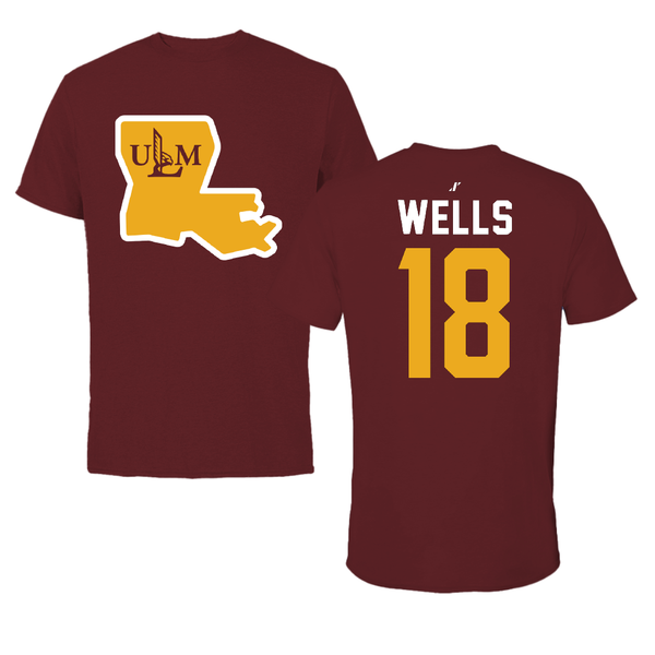 University of Louisiana Monroe Football Maroon State Tee - #18 Kevontay Wells