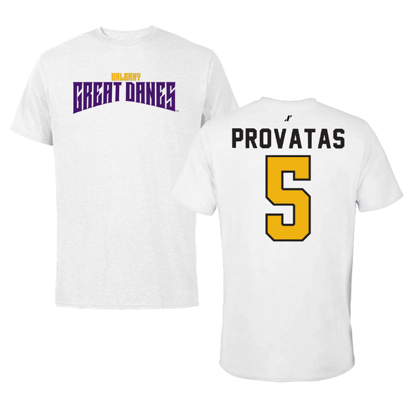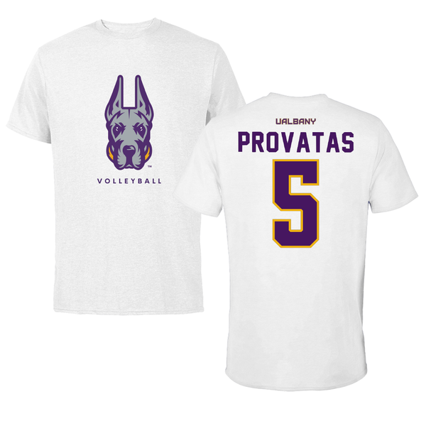 University at Albany Volleyball White Mascot Tee - #5 Kiki Provatas