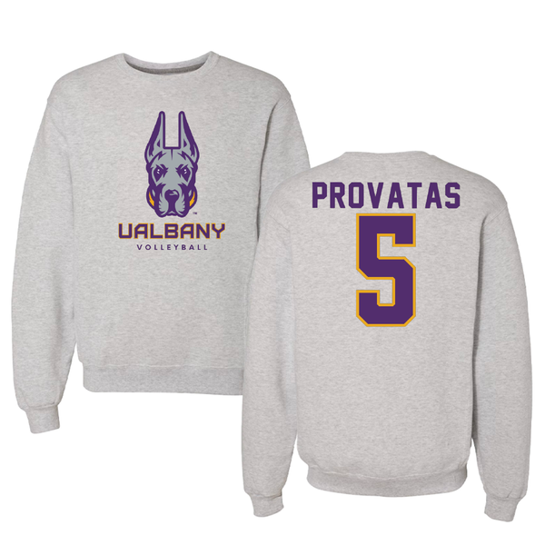 University at Albany Volleyball Gray Crewneck - #5 Kiki Provatas