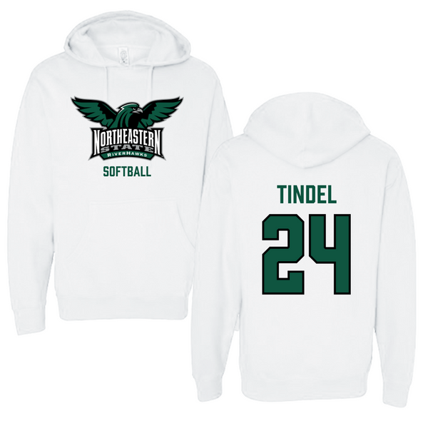 Northeastern State University Softball White Hoodie - #24 Korynn Tindel