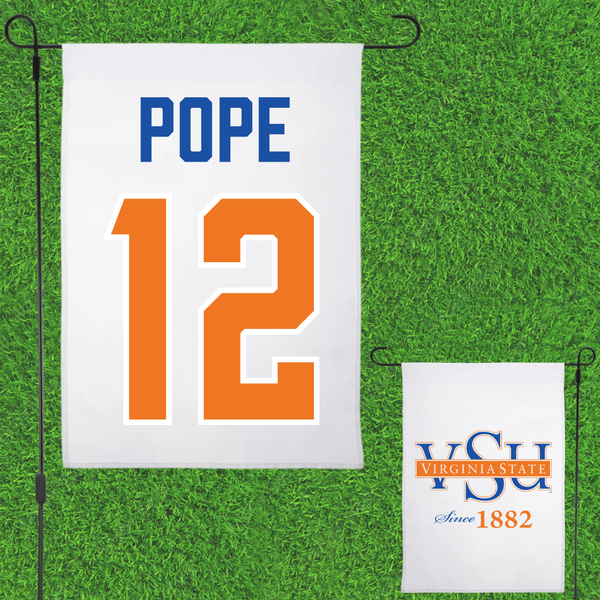 Virginia State University Football White Garden Flag - #12 Kvaughan Pope