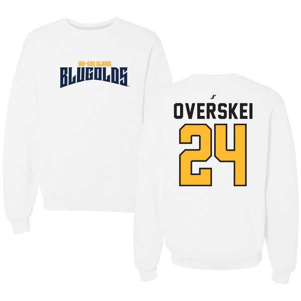 University of Wisconsin-Eau Claire Basketball White Classic Crewneck - #24 Kyla Overskei
