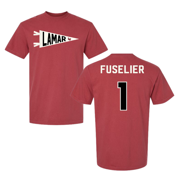Lamar University Football Canvas Red Pennant Comfort Colors Tee - #1 Kyndon Fuselier