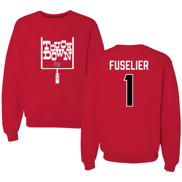 Lamar University Football Red Touchdown Crewneck - #1 Kyndon Fuselier