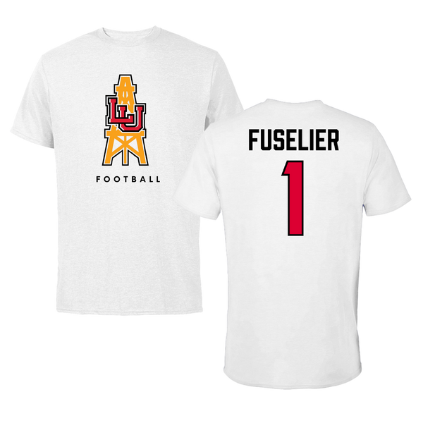 Lamar University Football White Tee - #1 Kyndon Fuselier