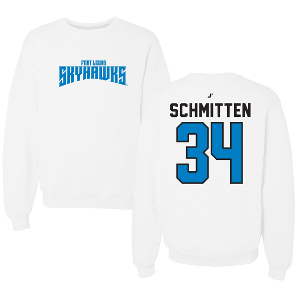Fort Lewis College Football White Classic Crewneck - #34 Lucas Schmitten
