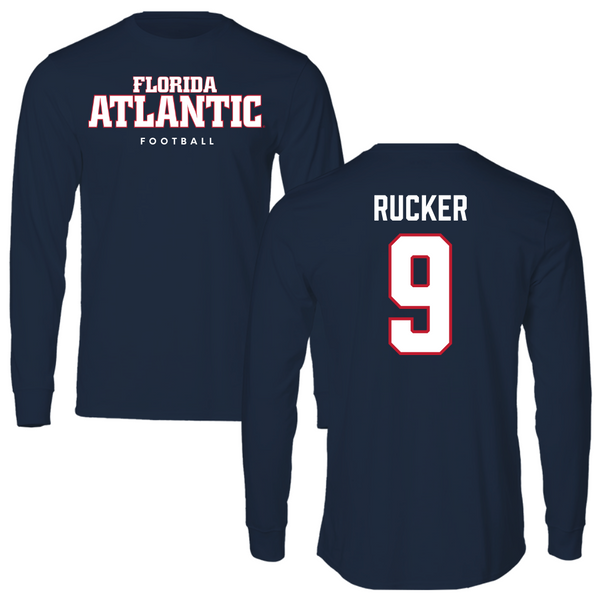 Florida Atlantic University Football Navy Block Long Sleeve - #9 Luke Rucker