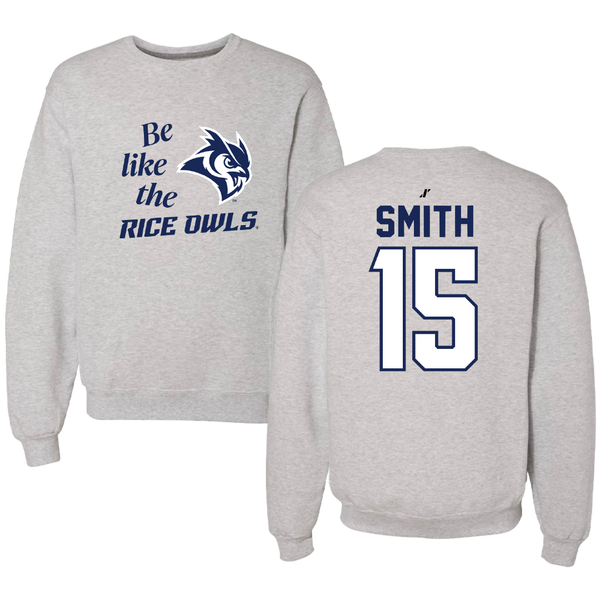 Rice University Baseball Light Gray Be Like Us Crewneck - #15 Luke Smith