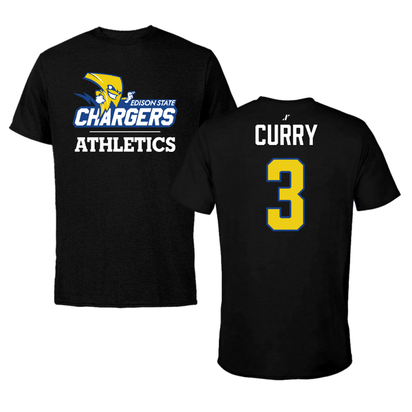 Edison State Community College Basketball Black Tee - #3 Malcolm Curry