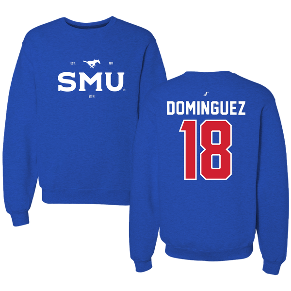 Southern Methodist University Soccer Blue General Crewneck - #18 Martin Dominguez
