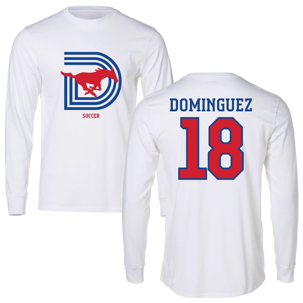 Southern Methodist University Soccer White Classic Long Sleeve - #18 Martin Dominguez