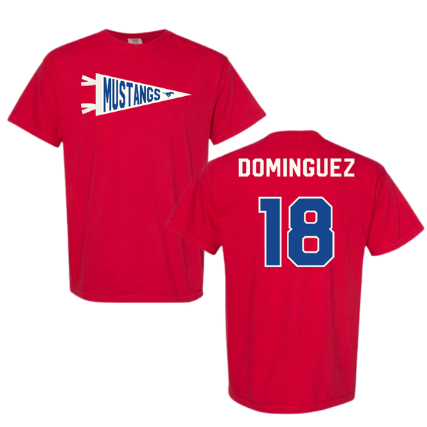 Southern Methodist University Soccer Red Pennant Comfort Colors Tee - #18 Martin Dominguez