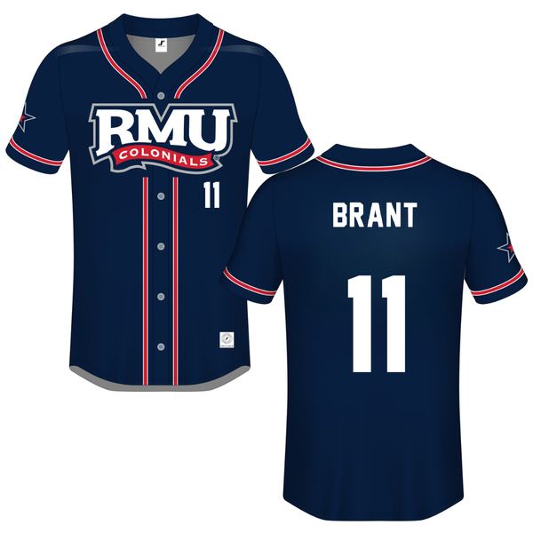 Robert Morris University Navy Button-Down Jersey - #11 Mary Brant