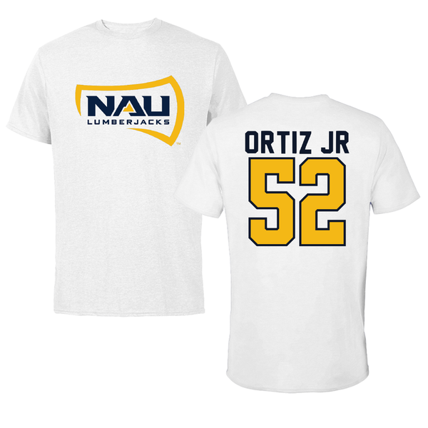 Northern Arizona University Football White Tee - #52 Matias Ortiz Jr