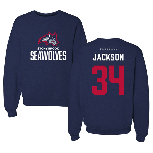 Stony Brook University Baseball Navy Crewneck - #34 Matt Jackson