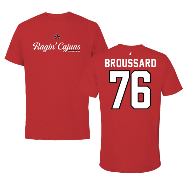 University of Louisiana at Lafayette Football Red Tee - #76 Matthew Broussard