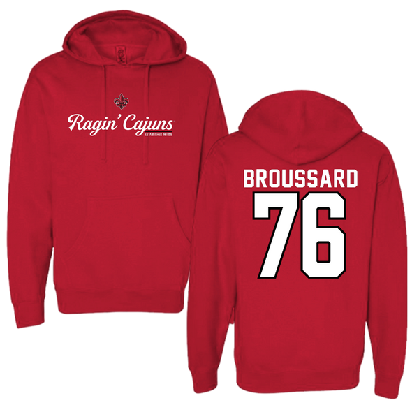University of Louisiana at Lafayette Football Red General Hoodie - #76 Matthew Broussard